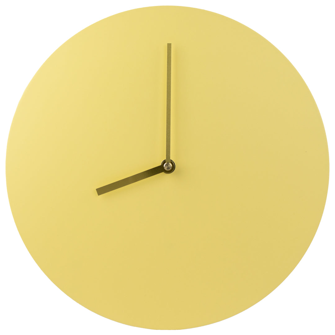 Aporta un toque de calidez y sencillez a tu hogar u oficina con este reloj de pared de diseño minimalista. Su esfera y manecillas en un armonioso tono amarillo suave crean una estética limpia y moderna.